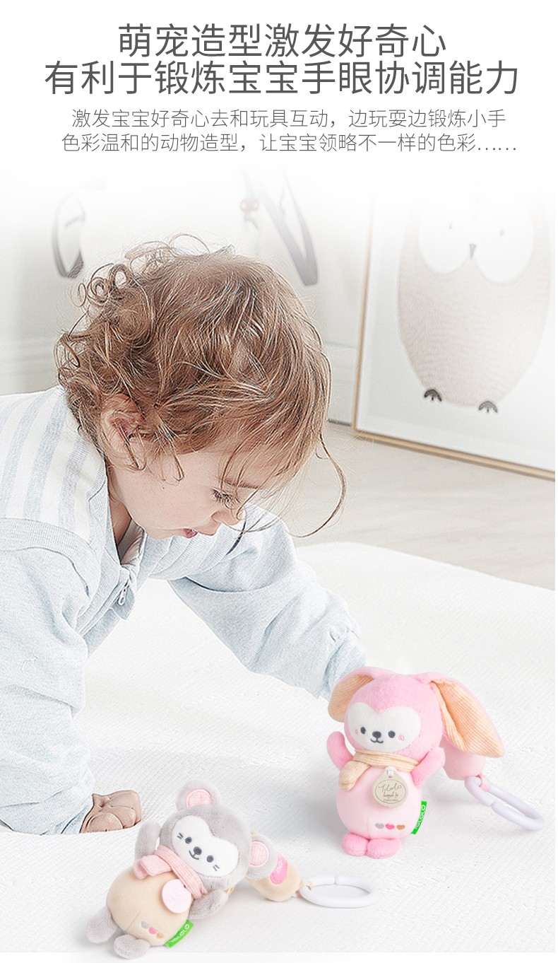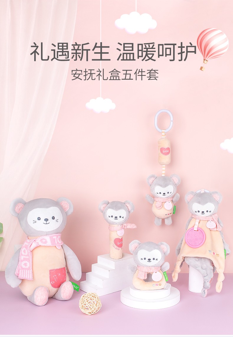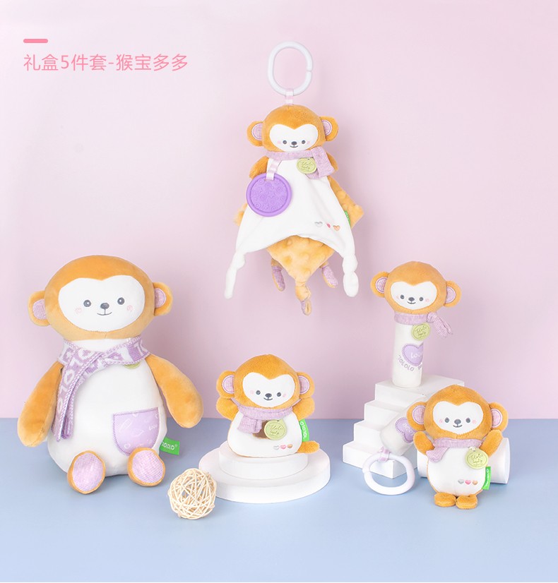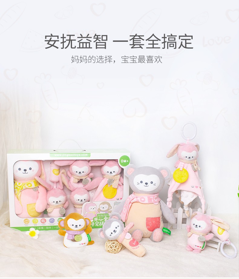Happy monkey嬰兒手抓搖鈴新生兒抓握訓練安撫玩偶寶寶早教玩具