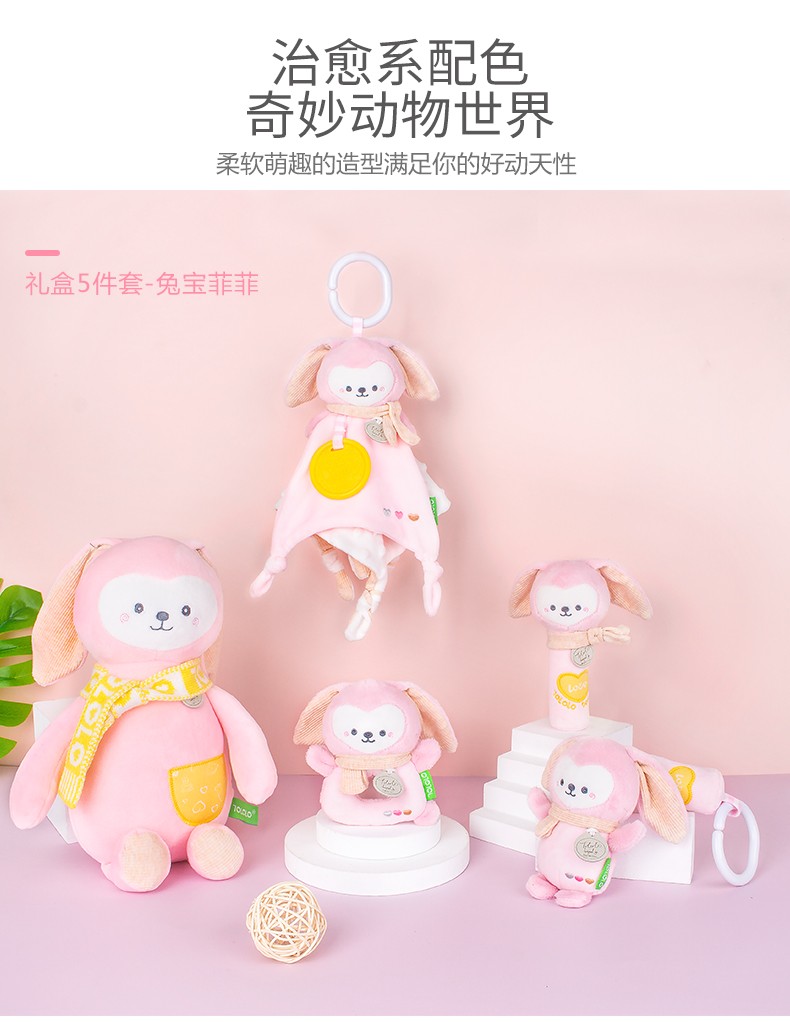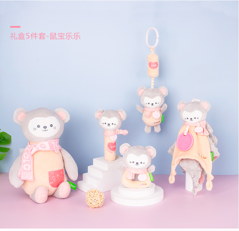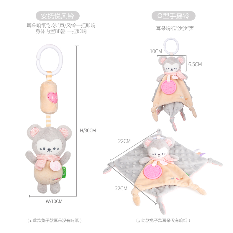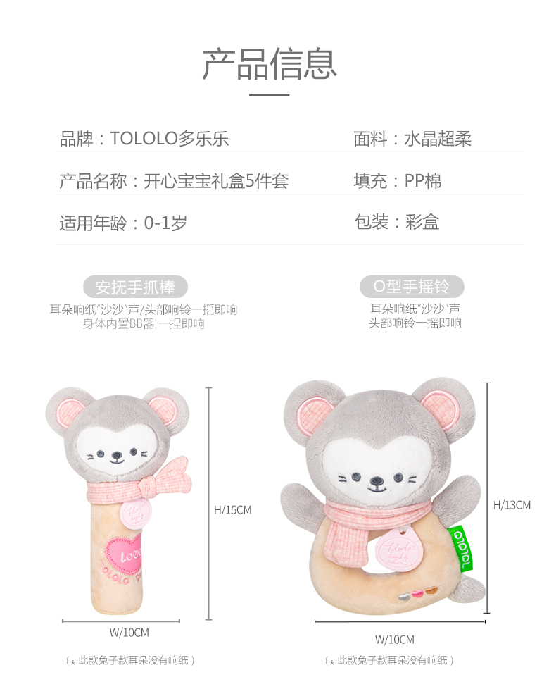 TOLOLO新生兒玩具0-3-6個月毛絨手抓搖鈴1歲寶寶早教嬰兒手搖鈴