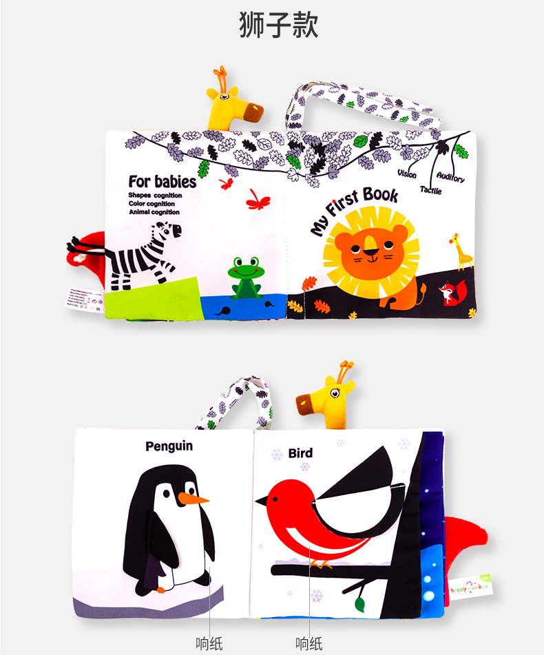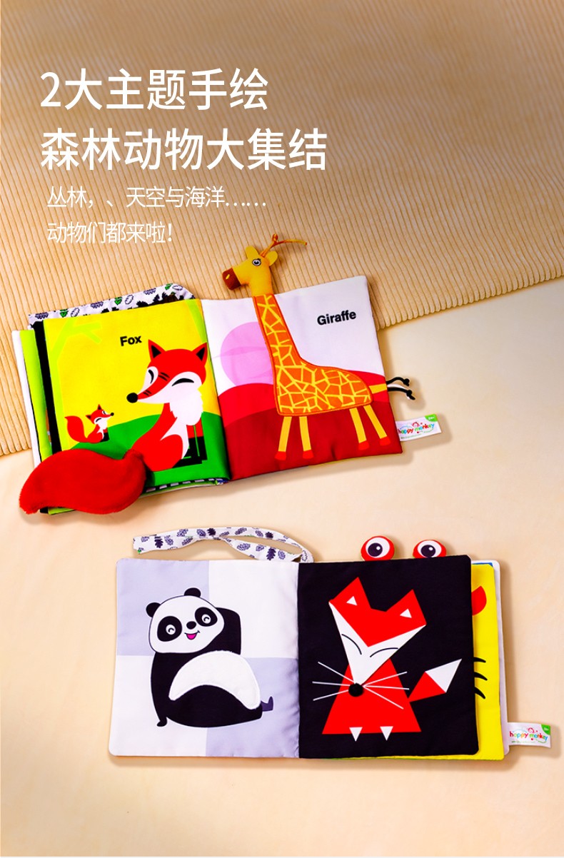 Happymonkey撕不爛毛絨紙巾盒嬰兒玩具0-1歲牙膠響紙早教寶寶玩具